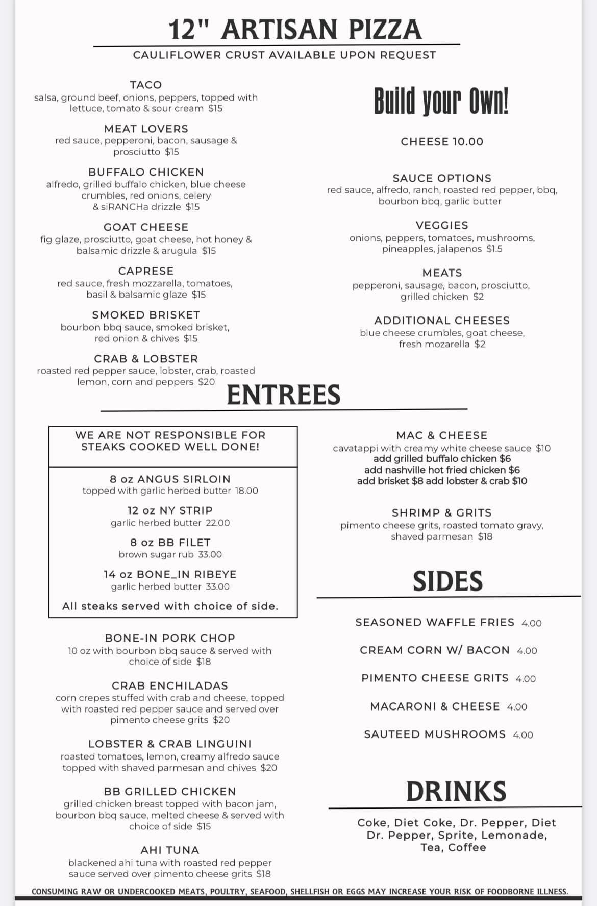 •20+ BIG SCREEN TVS •80+ BOURBONS •PIZZA •STEAKS •SLIDERS